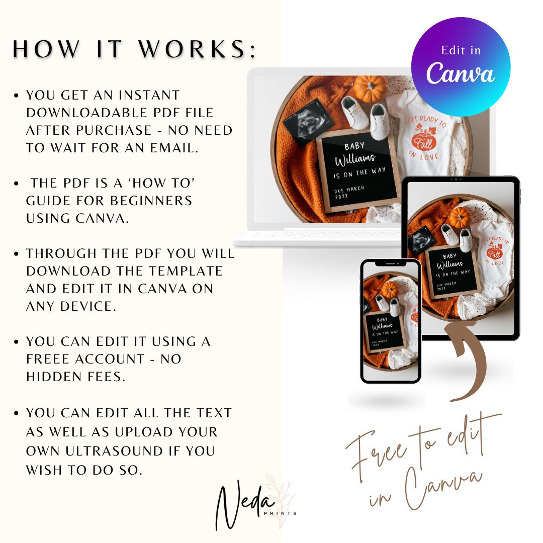 You're pregnant, how exciting!! It's time to share the news with friends and family and this baby announcement mockup is the cutest and quickest way to so. The template is made in Canva so all you need to do is create a free account and your ready to edit your invite.