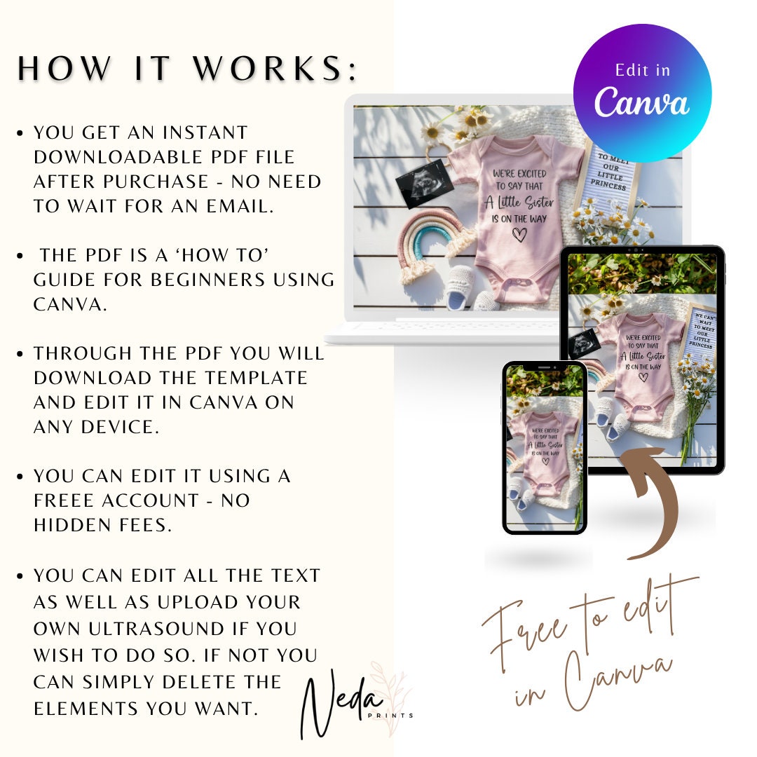 You're pregnant, how exciting!! It's time to share the news with friends and family and this baby announcement mockup is the cutest and quickest way to so. The template is made in Canva so all you need to do is create a free account and your ready to edit your invite.