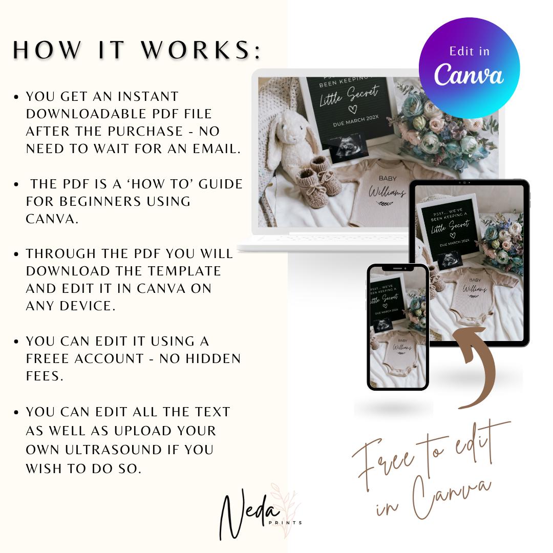 EDITABLE Pregnancy Announcement Digital, Baby announcement, Pregnancy Reveal, Customizable Announcement, Social media Instant Download, 0479