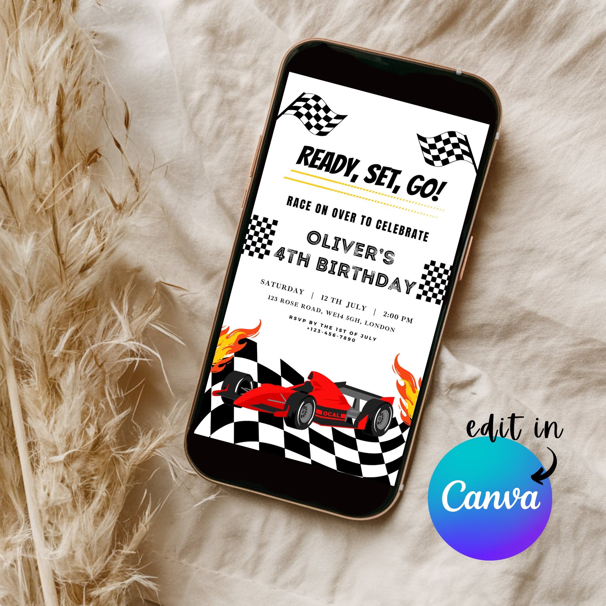 EDITABLE Ready, Set, Go Race Car Birthday Invitation, Race Car birthday Invite, 3rd 4th 5h 6th 7th 8th Birthday Invitation, Instant Download