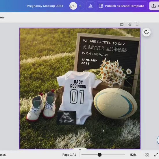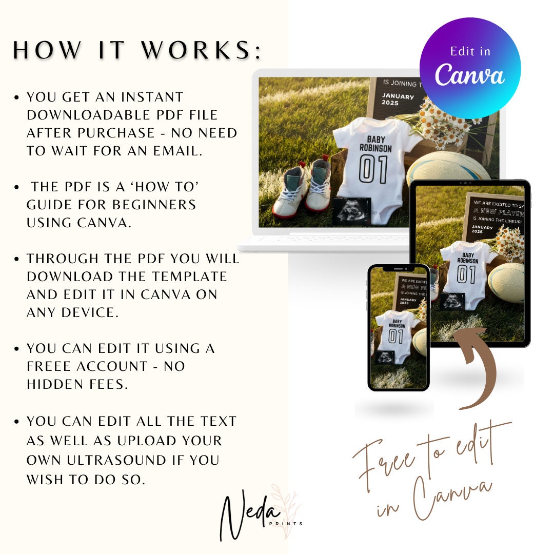 EDITABLE Rugby Pregnancy Announcement Digital, Rugby Baby announcement, Instagram Pregnancy Reveal, Customizable Announcement, Download 0265