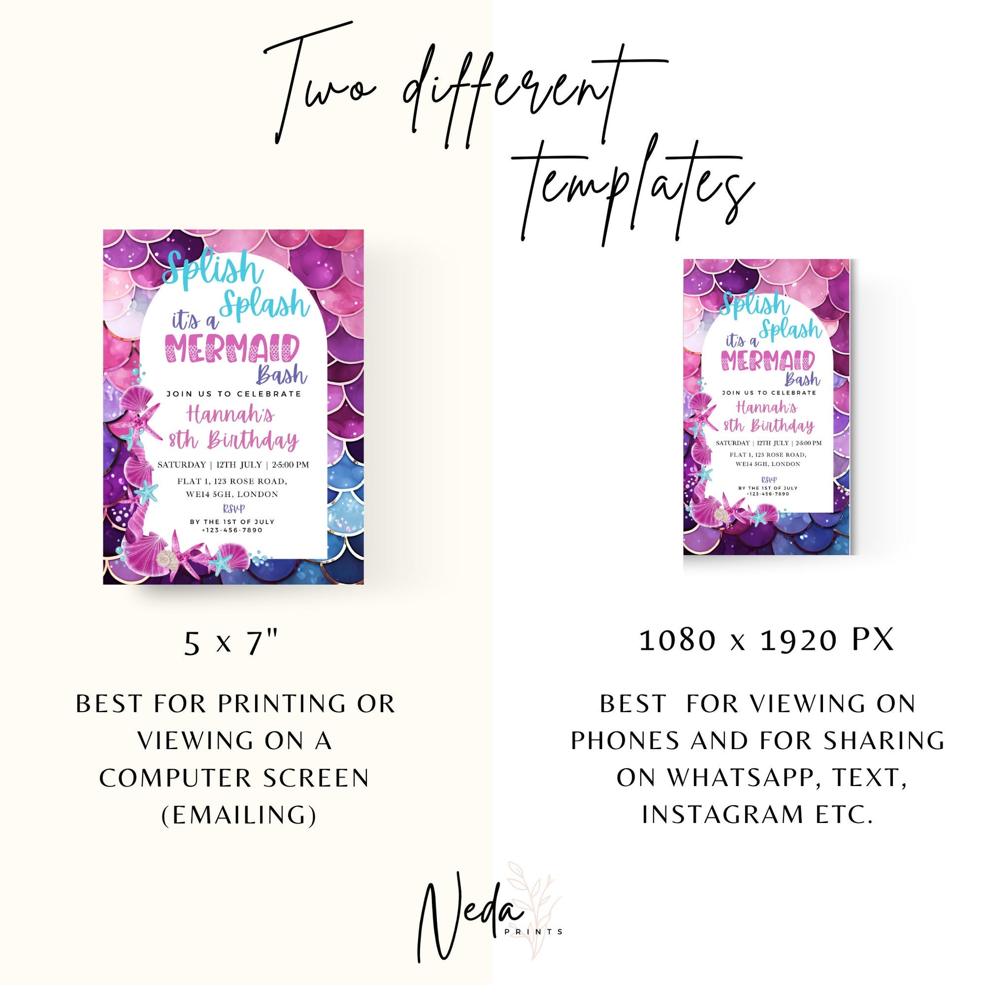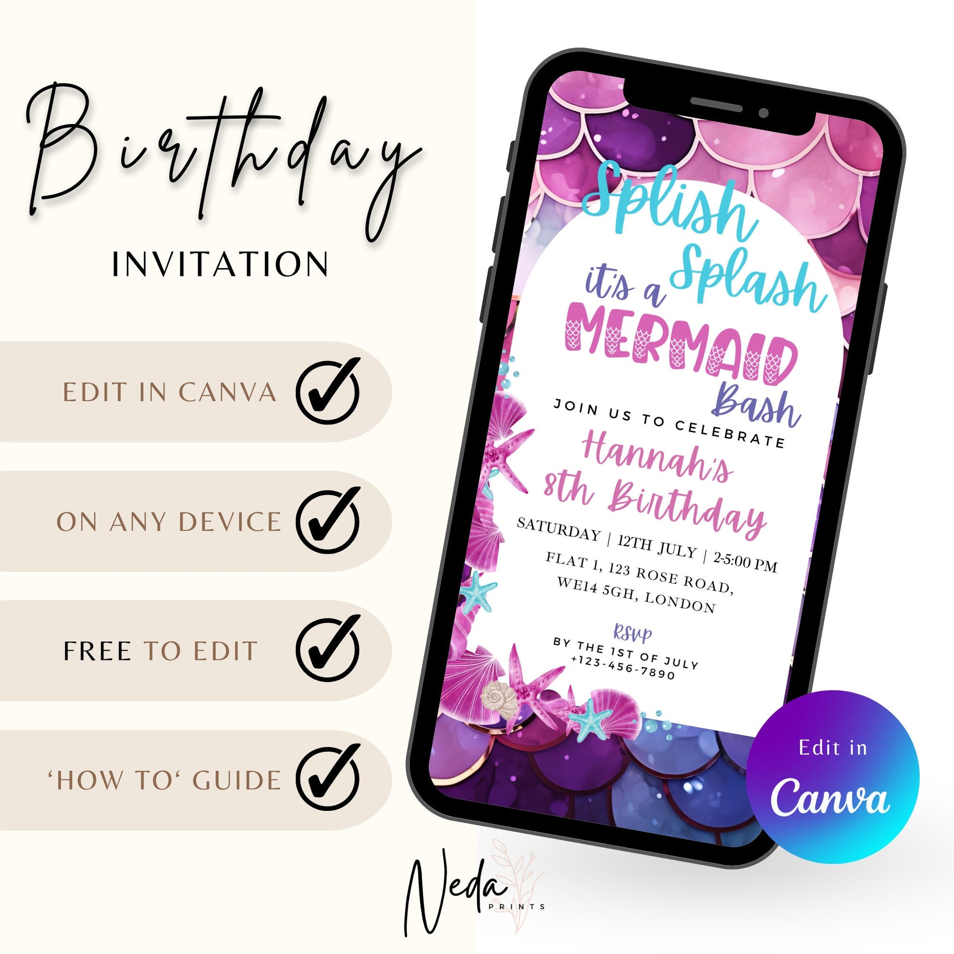 EDITABLE Splish Splash Birthday Invitation, Mermaid Party, Birthday Girl Invite, Mermaid Bash, Mermaid invitation Printable Instant Download