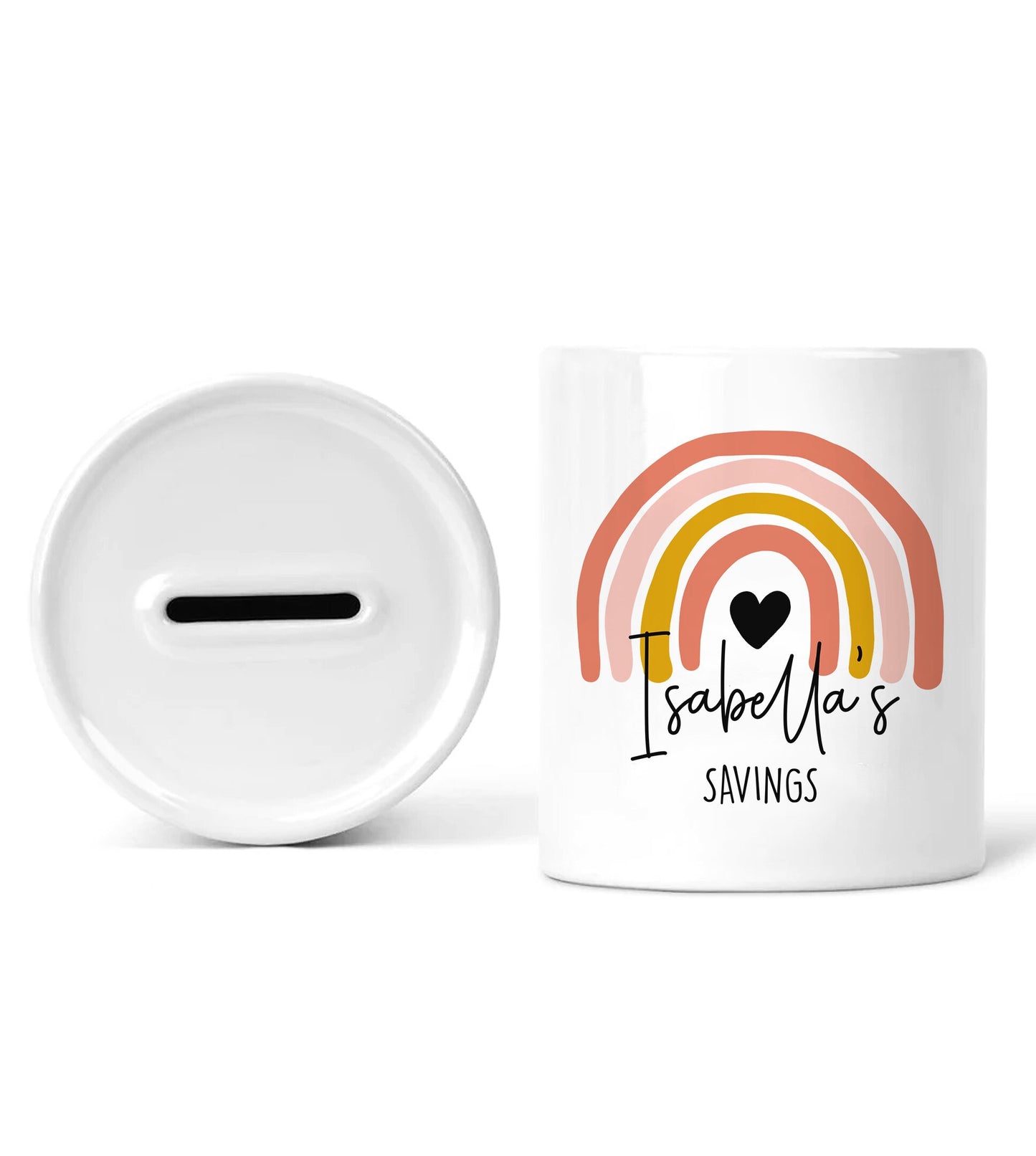 Personalised Rainbow Savings Money Box, Girl Money Box
