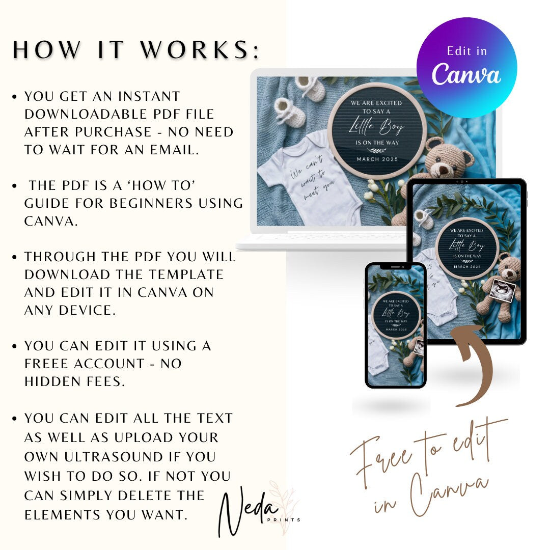 You're pregnant, how exciting!! It's time to share the news with friends and family and this baby announcement mockup is the cutest and quickest way to so. The template is made in Canva so all you need to do is create a free account and your ready to edit your invite.