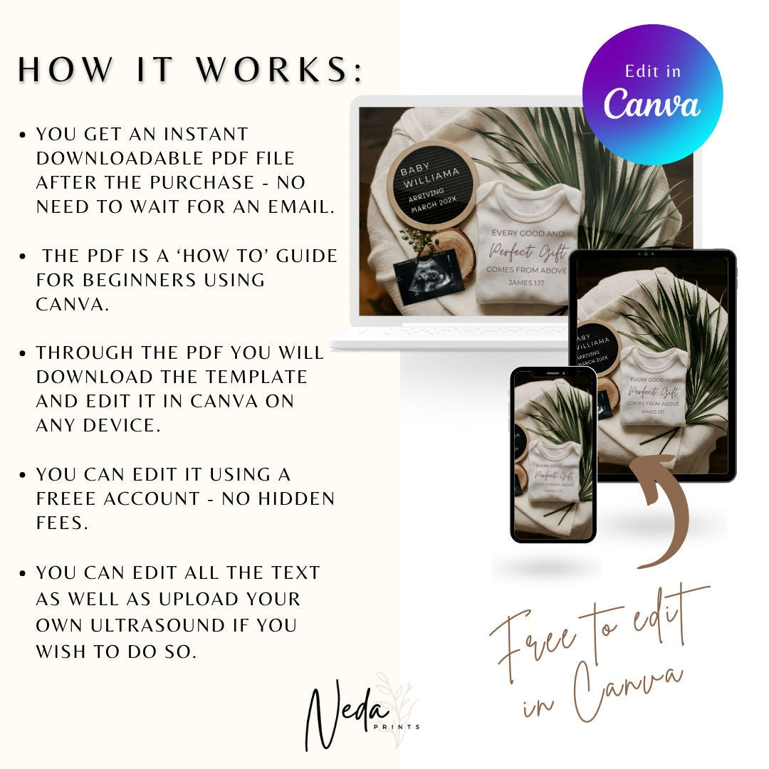 EDITABLE Neutral Baby Christian Pregnancy Announcement, Digital Pregnancy Announcement, Social Media Instagram post, Instant Download 0456