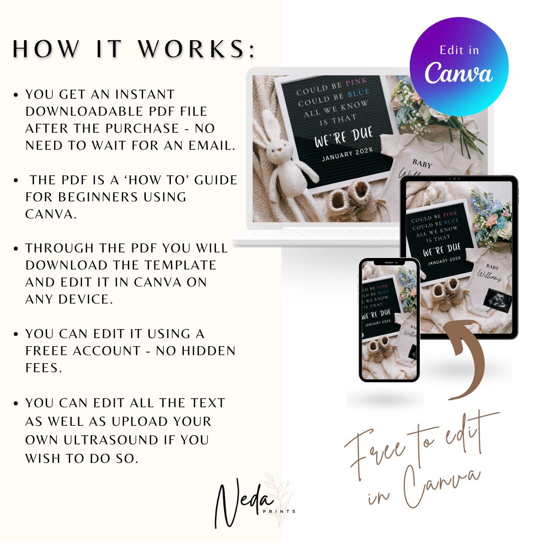 EDITABLE Pregnancy Announcement Digital, Baby announcement, Pregnancy Reveal, Customizable Announcement Gender reveal Instant Download, 0481
