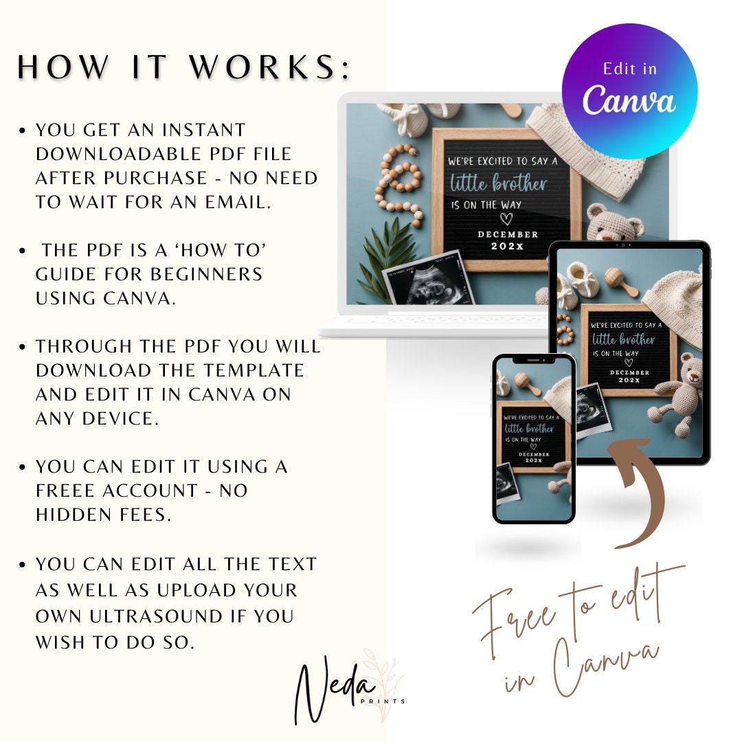 EDITABLE Little Brother Pregnancy Announcement Digital, Baby Boy announcement, pregnancy reveal, Social media announcement, Download 0283