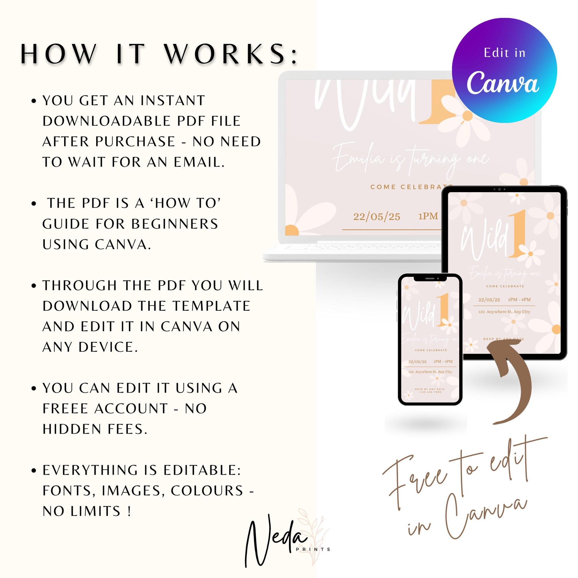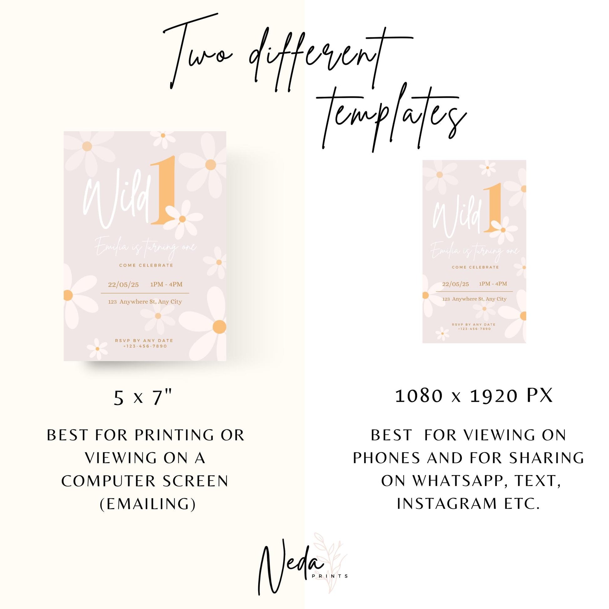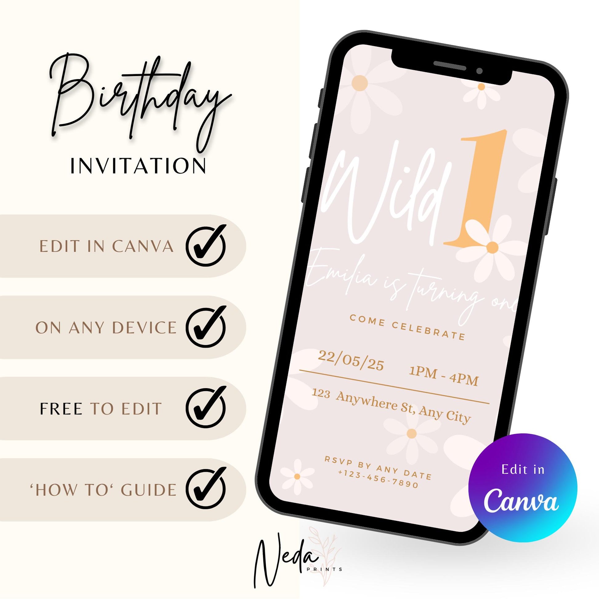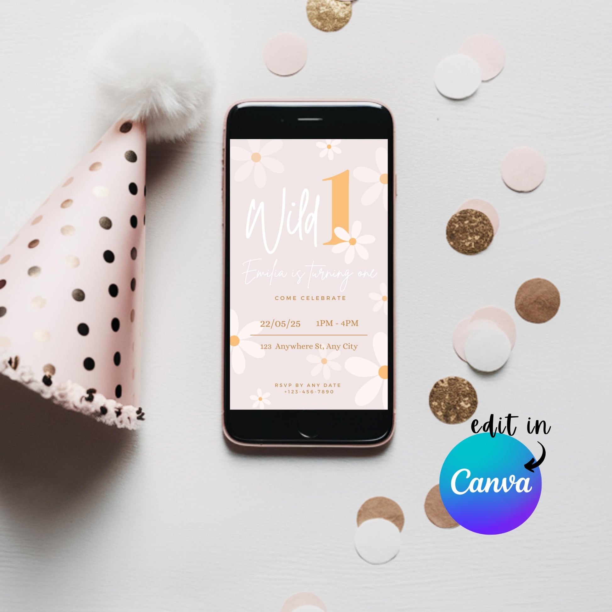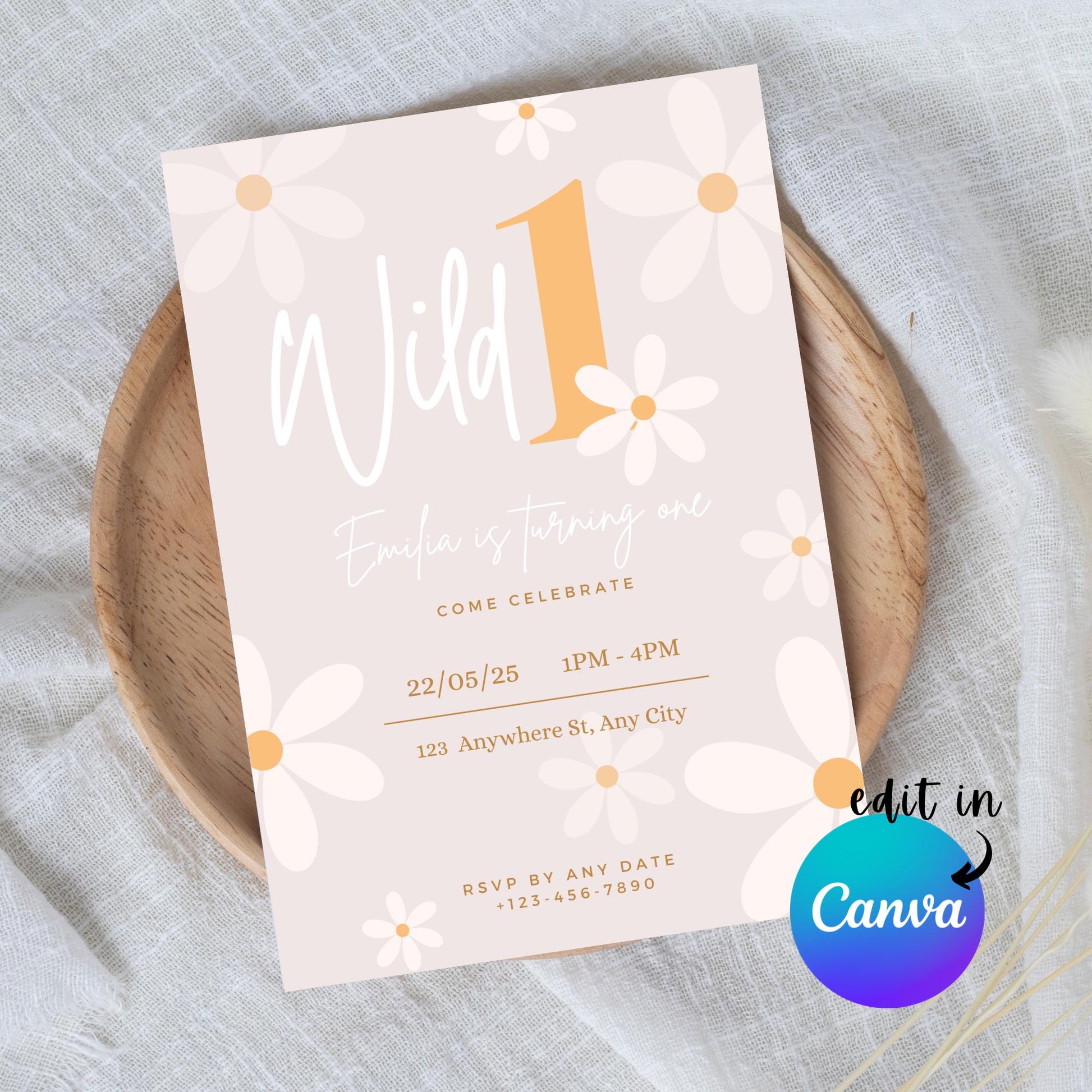 EDITABLE Wild 1 Daisy Birthday Invitation, 1st Birthday Invite Printable template, Daisy Flower Invite, First Birthday Flower Download I0155