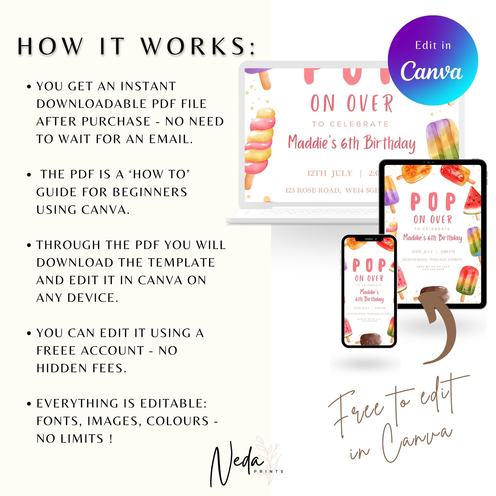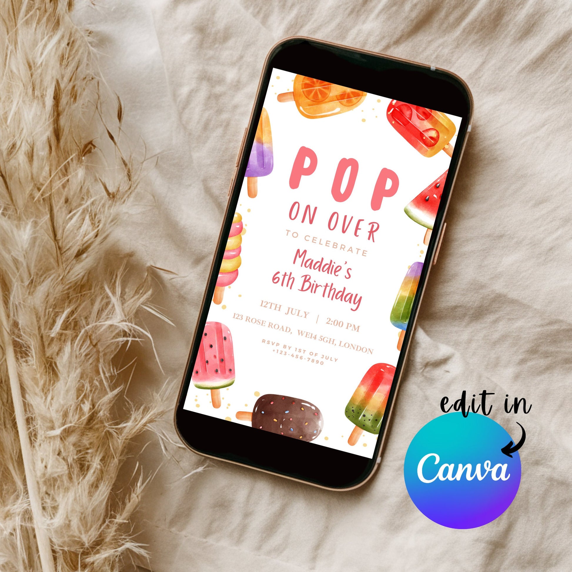 EDITABLE Popsicle Summer Ice Cream Birthday Invitation, Pop Ice cream themed party, Here's the scoop, Girl Birthday Invite, Template I0069