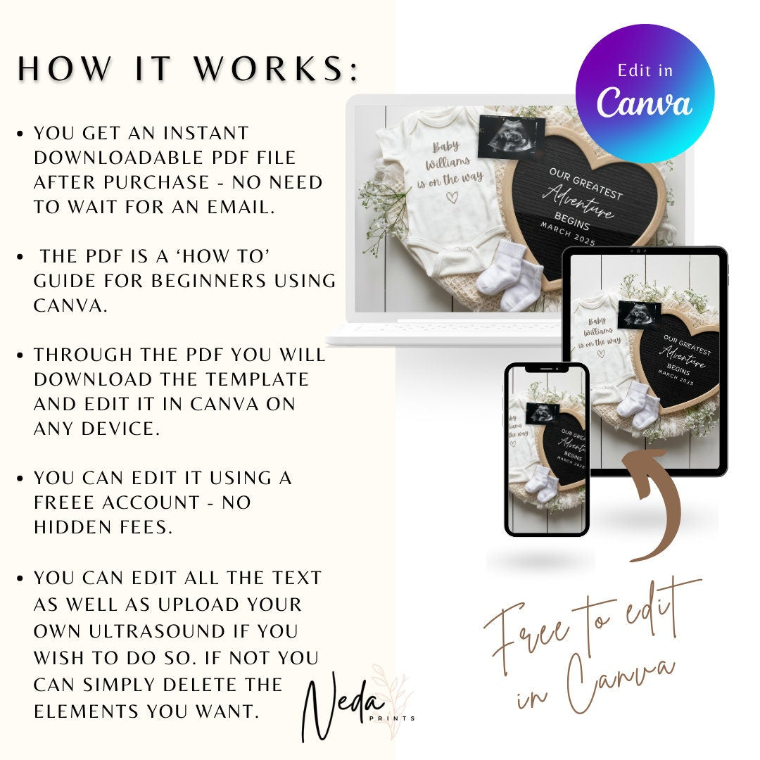 EDITABLE Pregnancy Announcement Digital, Baby announcement, Pregnancy Reveal, Customizable Maternity Announcement, Instant Download, 0139