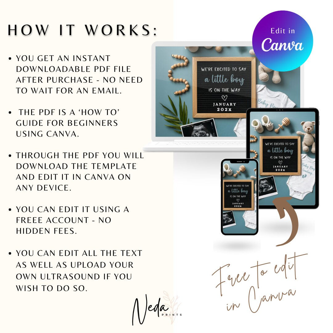EDITABLE Boy Pregnancy Announcement Digital, Baby Boy announcement, pregnancy reveal, Customizable social media announcement, Download 0285