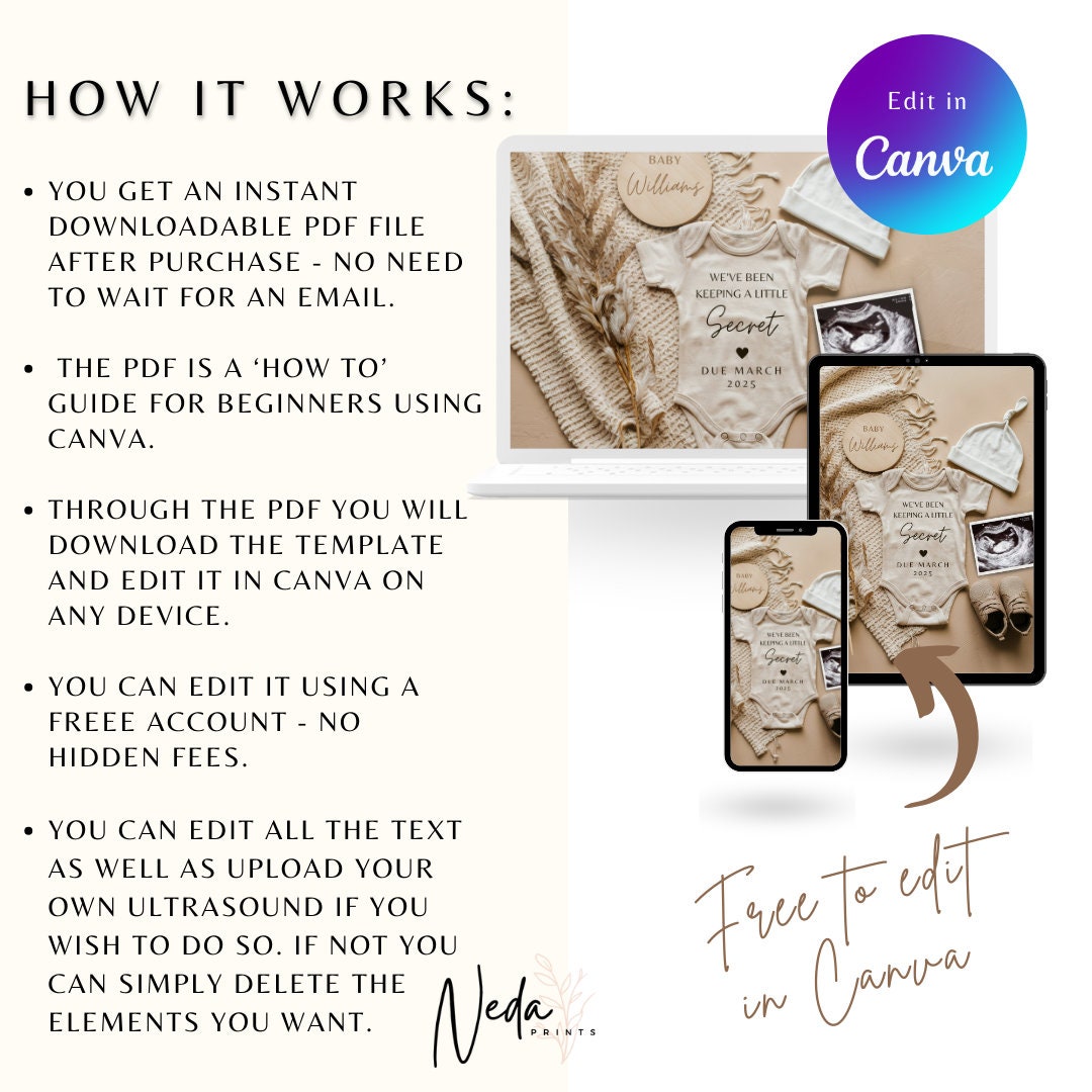 You're pregnant, how exciting!! It's time to share the news with friends and family and this baby announcement mockup is the cutest and quickest way to so. The template is made in Canva so all you need to do is create a free account and your ready to edit your invite.