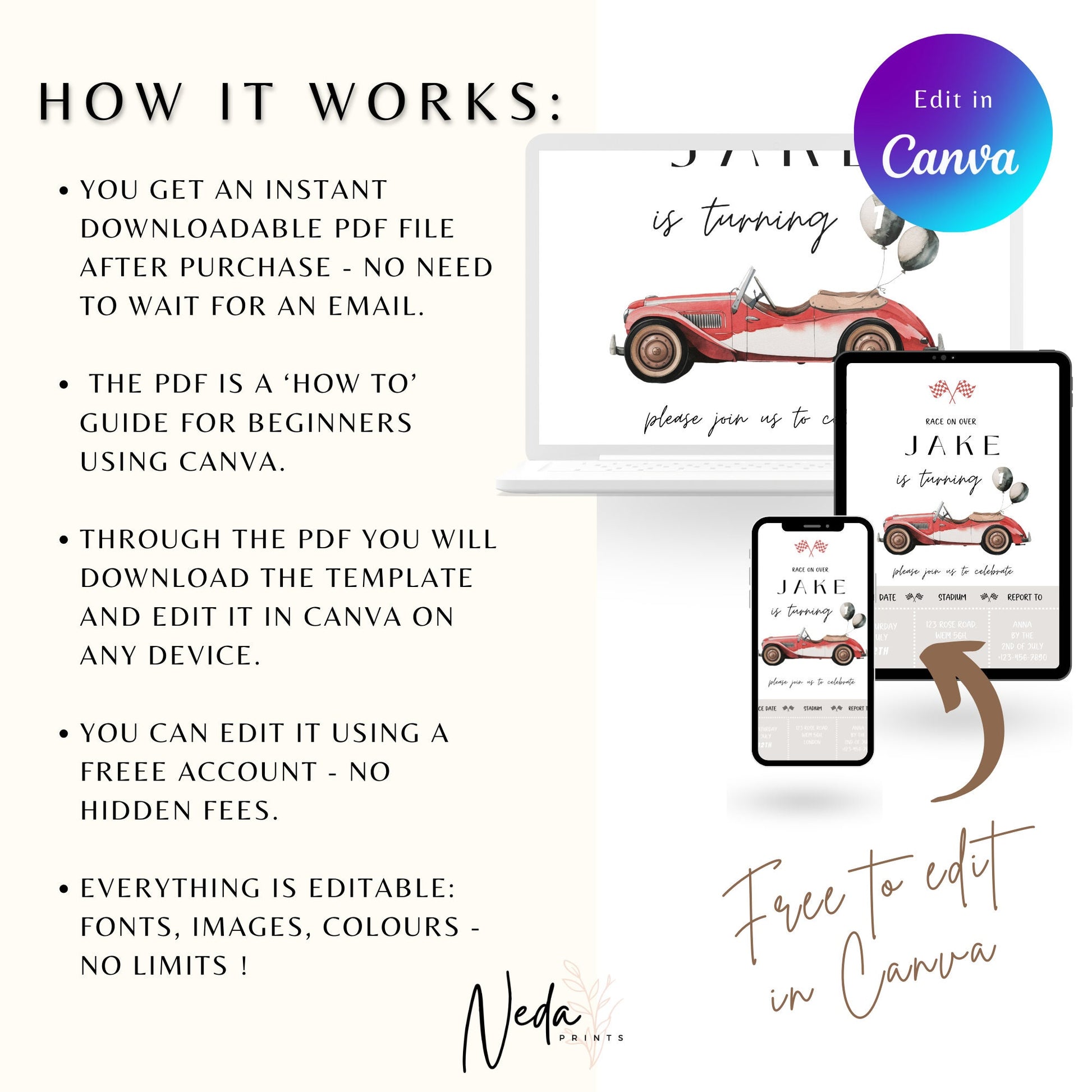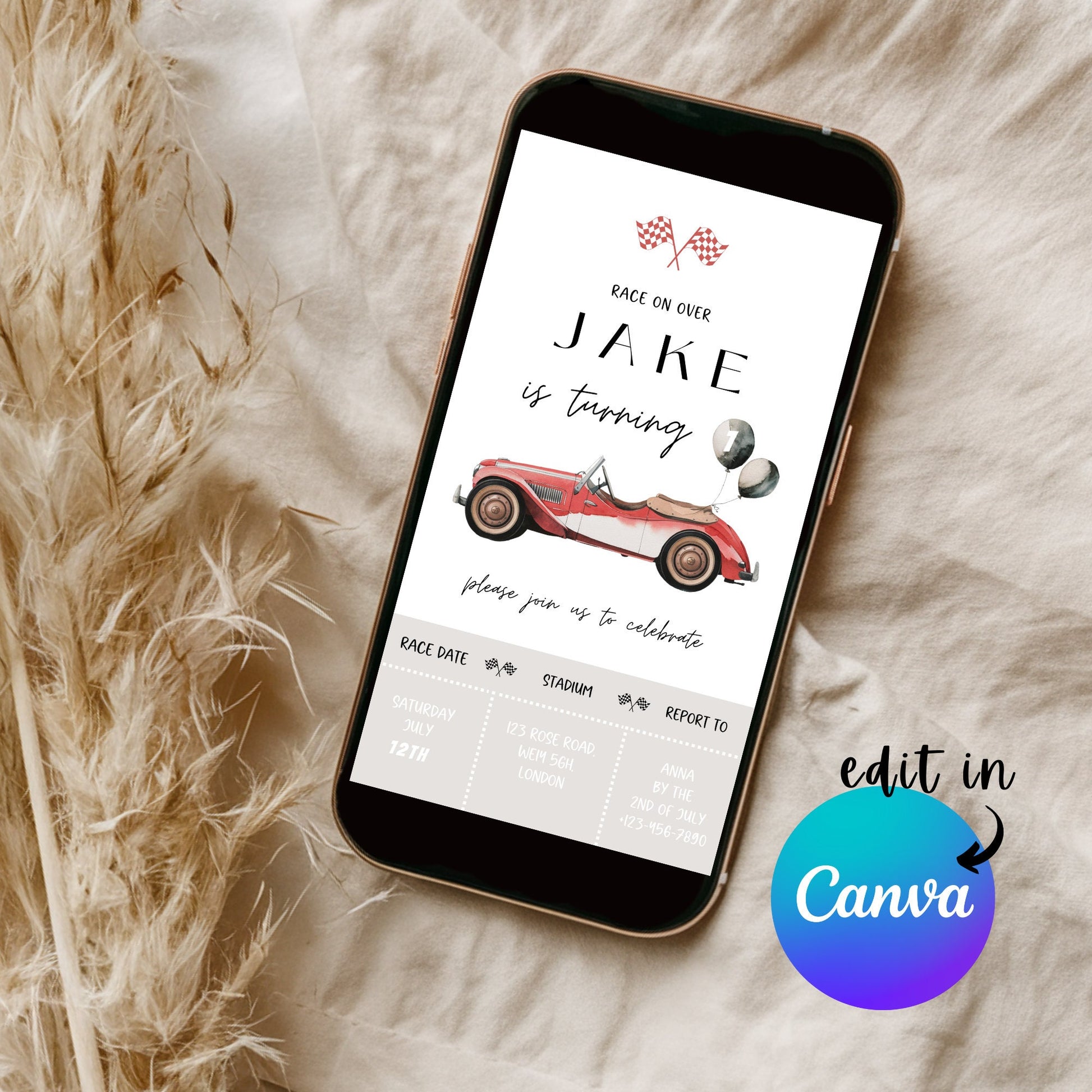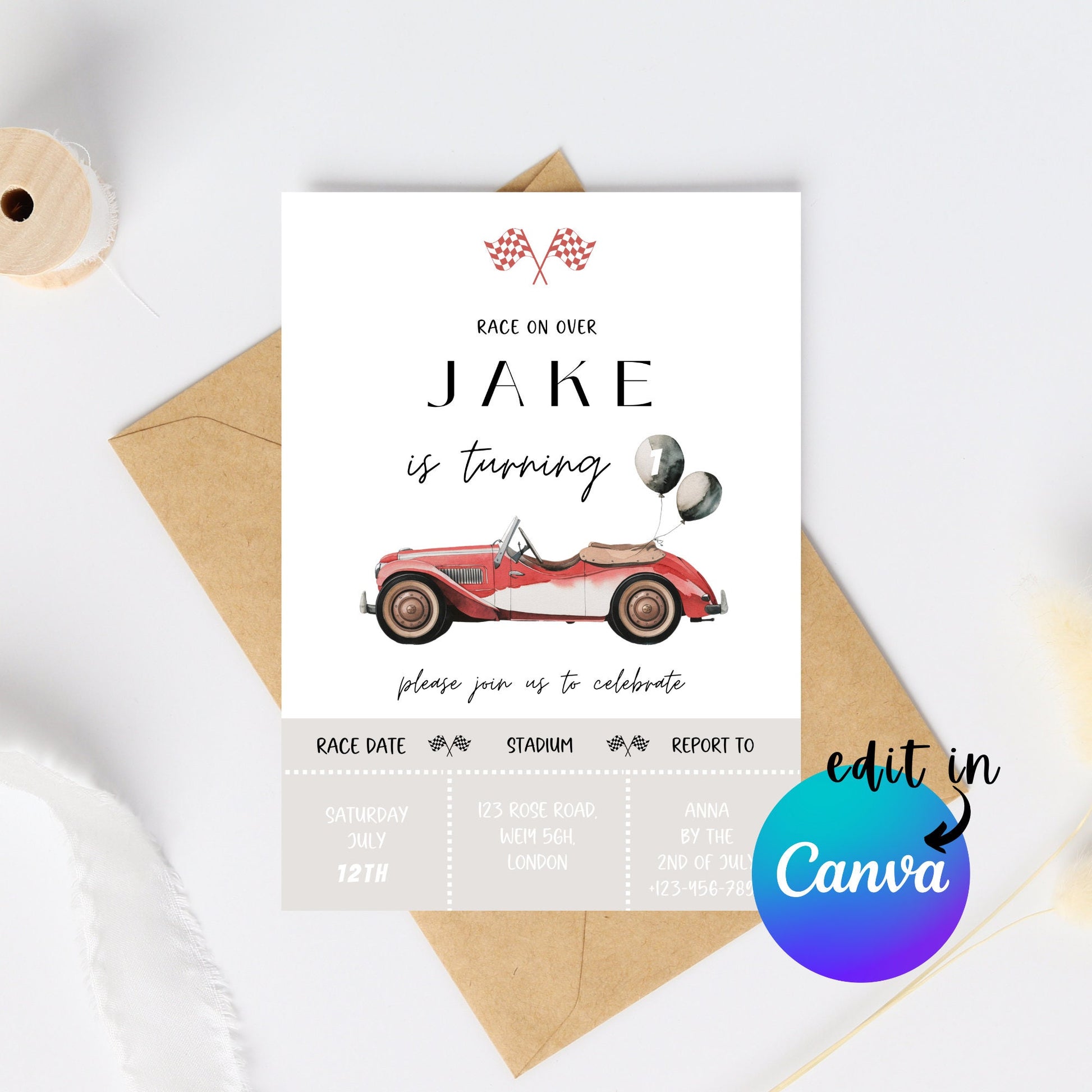 EDITABLE Retro Checkered Red Race Car Birthday Invitation, 1st 2nd 3rd Race car birthday invite First Second Third Birthday Instant Download