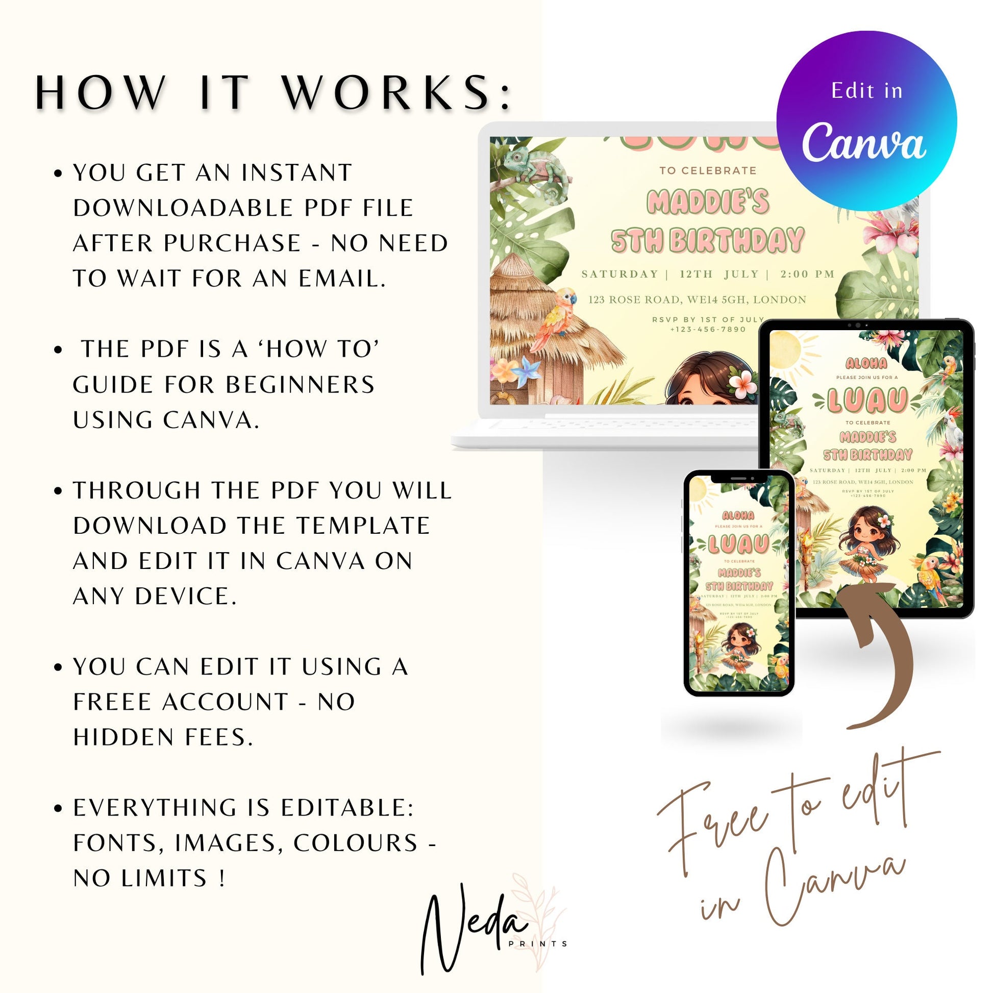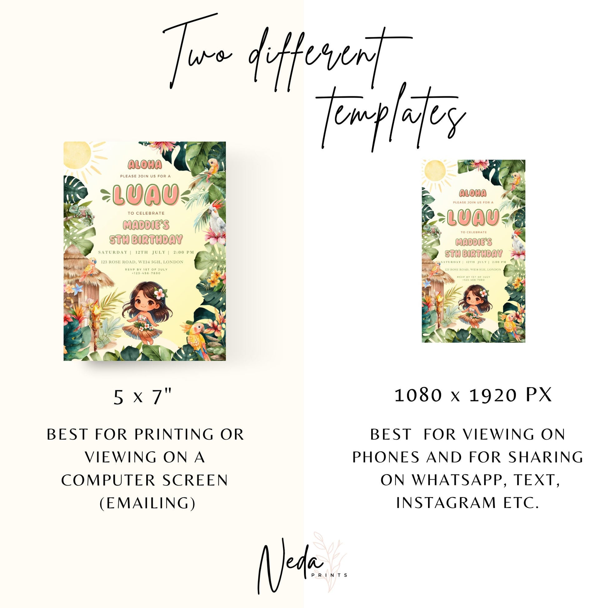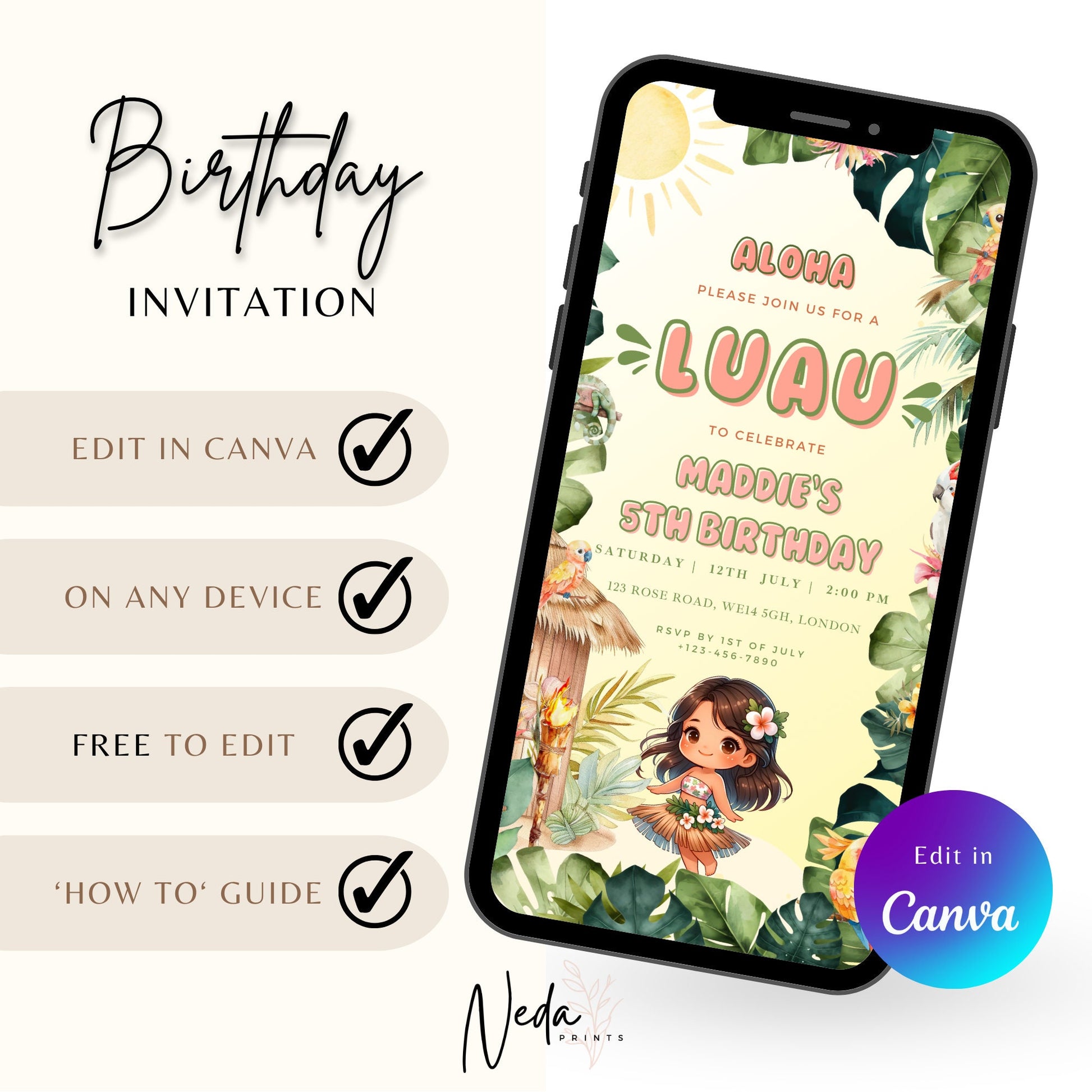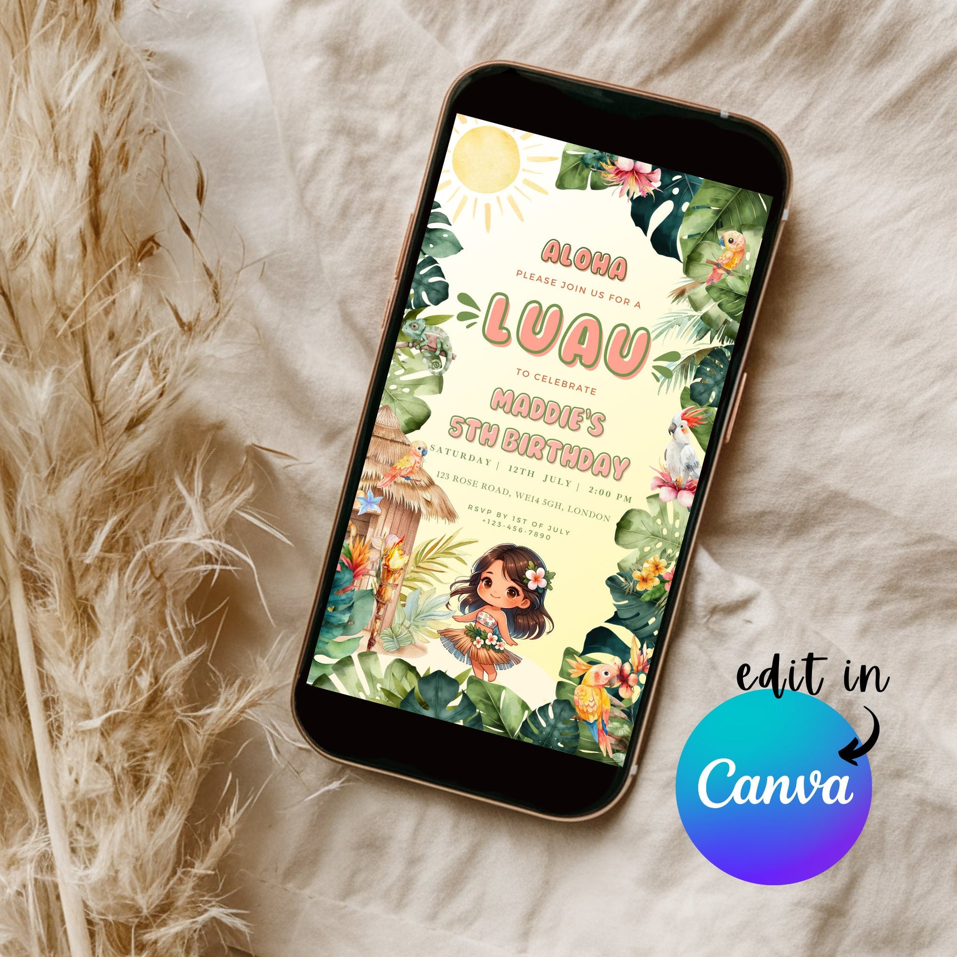 EDITABLE Aloha Tropical Hawaiian Birthday invite, Pool Party Hawaii Invite, Luau Birthday Party, Luau invitation, Beach Party Download I0096