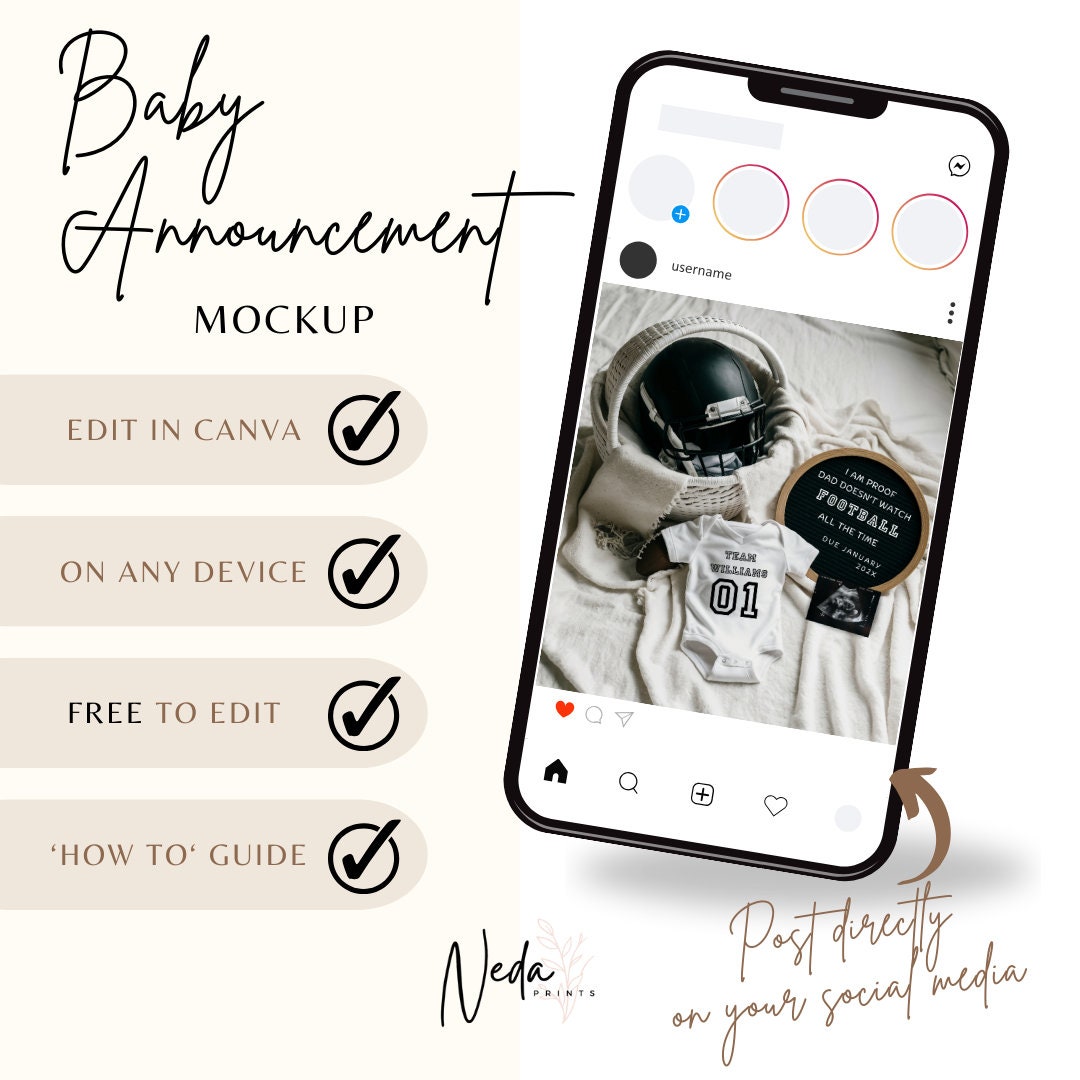 You're pregnant, how exciting!! It's time to share the news with friends and family and this baby announcement mockup is the cutest and quickest way to so. The template is made in Canva so all you need to do is create a free account and your ready to edit your invite.