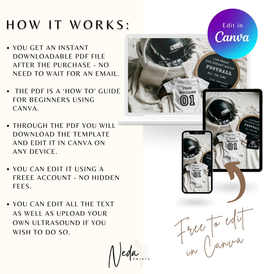 EDITABLE American Football Pregnancy Announcement, Baby Football announcement NFL Superbowl Pregnancy Sports Pregnancy Digital Download 0435