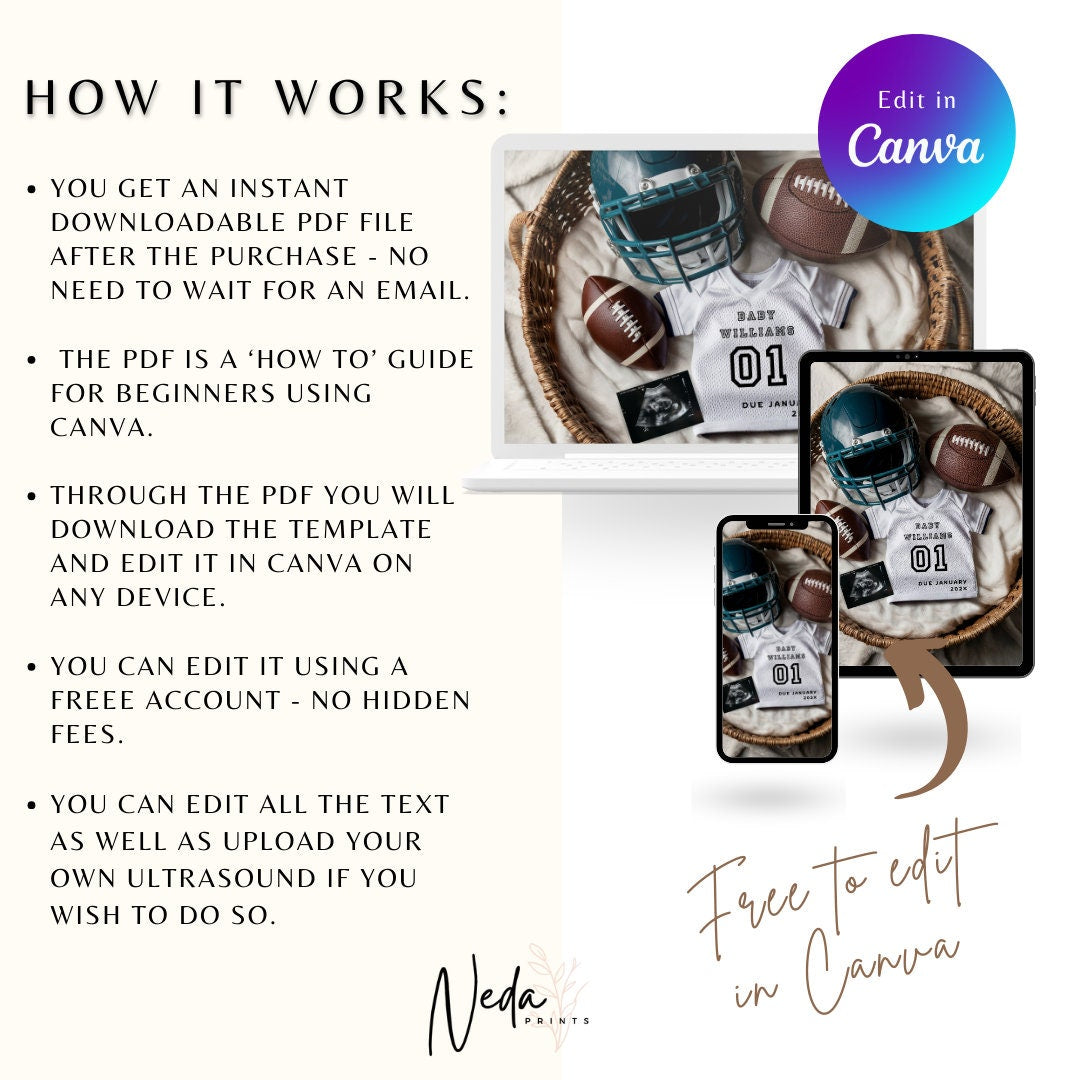 EDITABLE American Football Pregnancy Announcement, Baby Football announcement NFL Superbowl Pregnancy Sports Pregnancy Digital Download 0436
