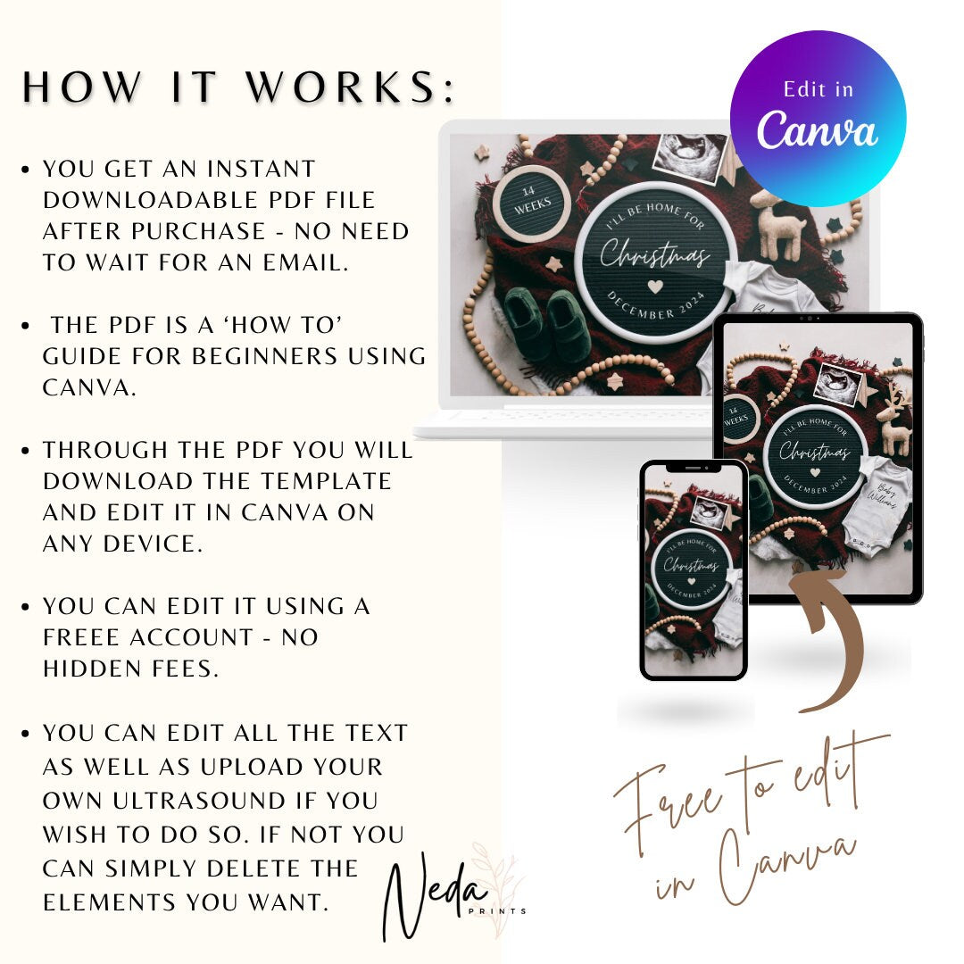 EDITABLE Christmas Pregnancy Announcement Digital, Baby announcement, Christmas Baby Reveal, Customizable maternity, Instant Download, 0086