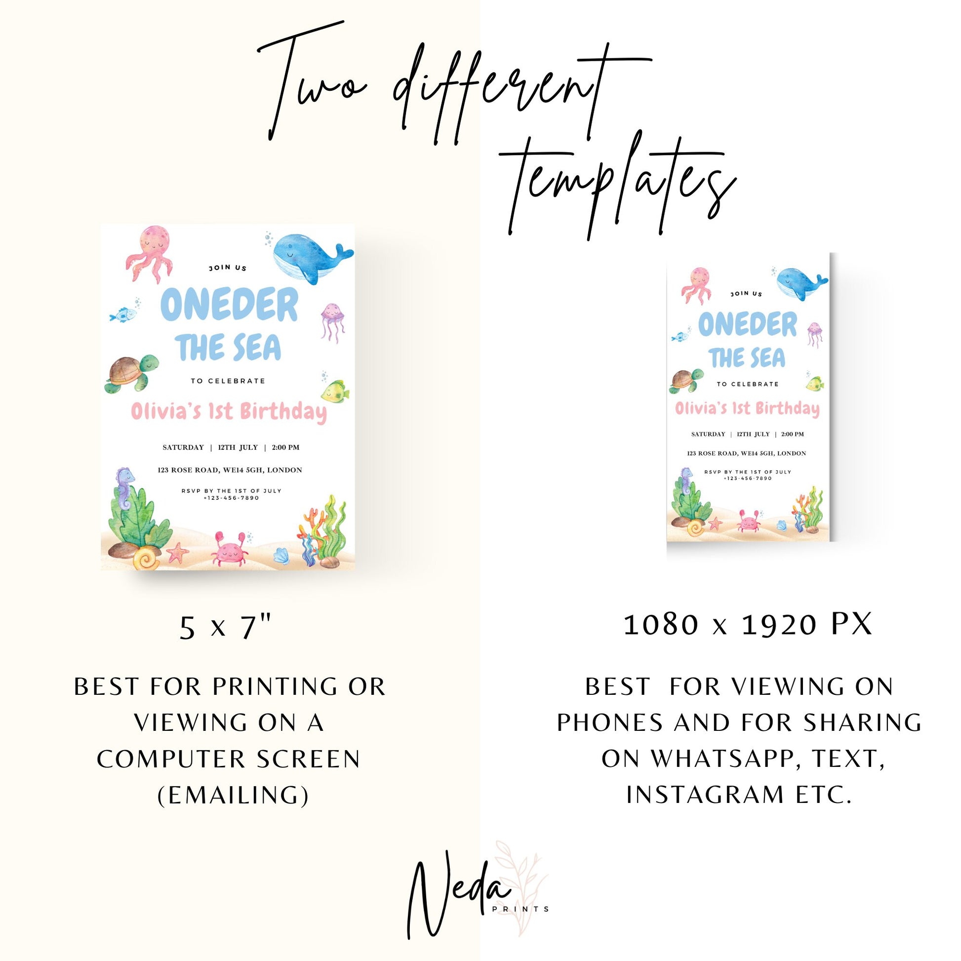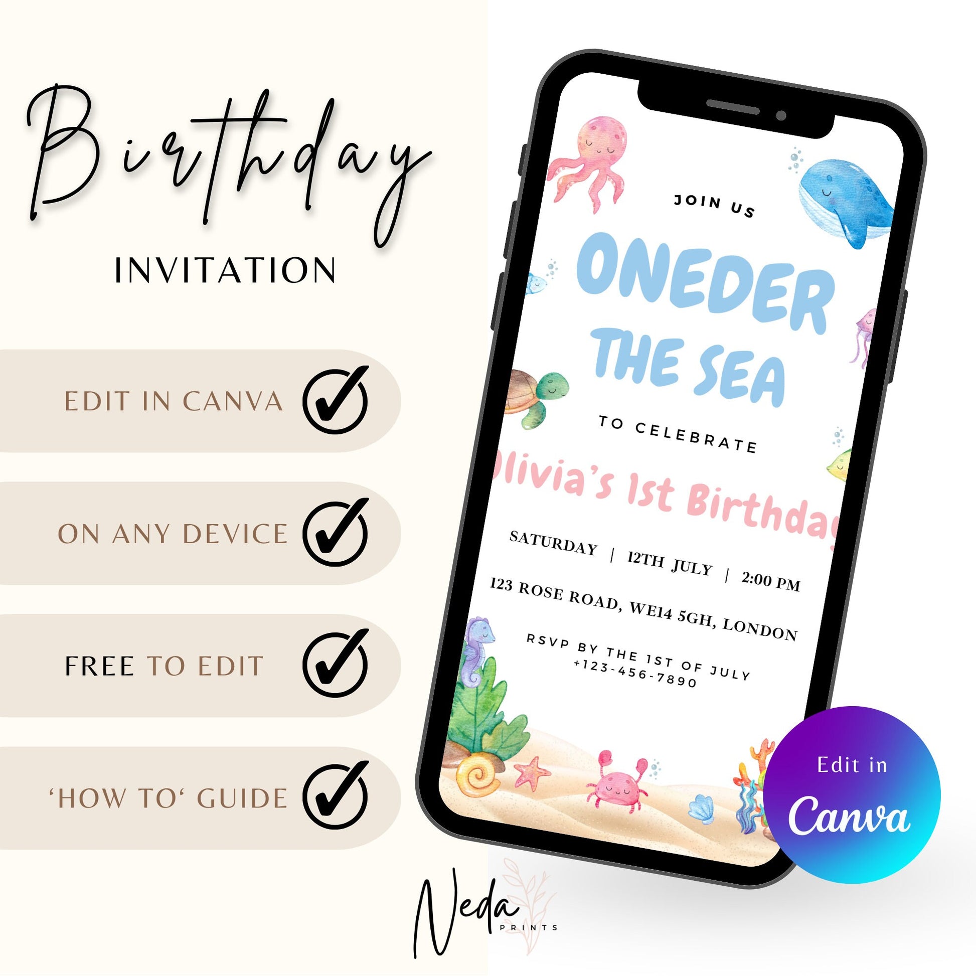 EDITABLE Oneder the Sea Birthday Invitation, 1st Birthday Invite, Ocean Animals, Beach aquarium Girl birthday, Printable, Instant Download