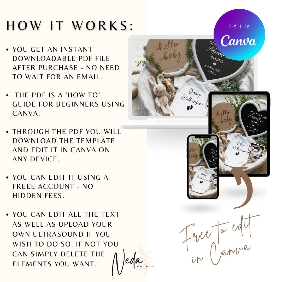 EDITABLE Pregnancy Announcement Digital, Baby announcement, Pregnancy Reveal, Customizable Maternity Announcement, Instant Download, 0030
