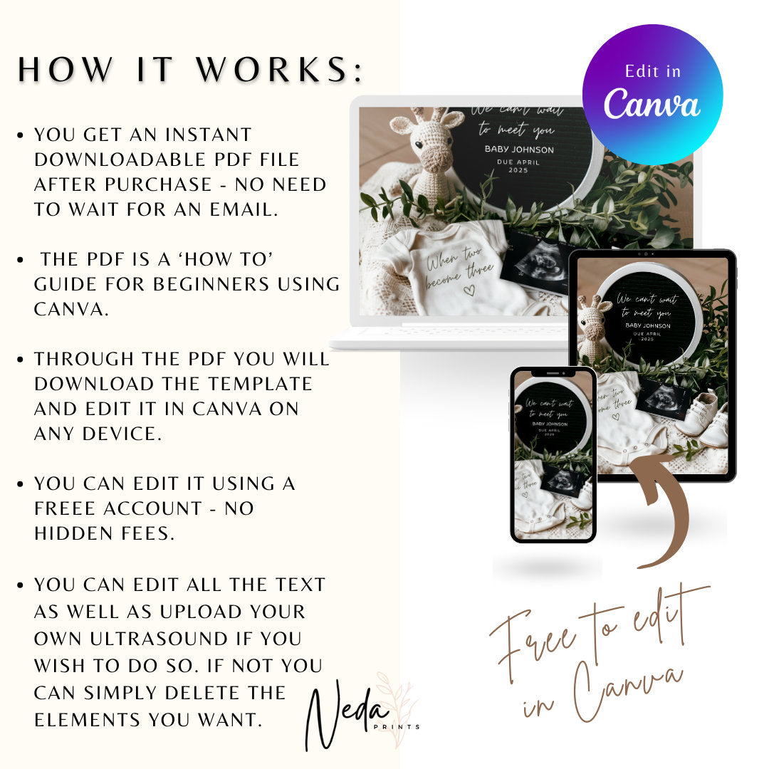 EDITABLE Pregnancy Announcement Digital, Baby announcement, Pregnancy Reveal, Customizable Maternity Announcement, Instant Download, 0115