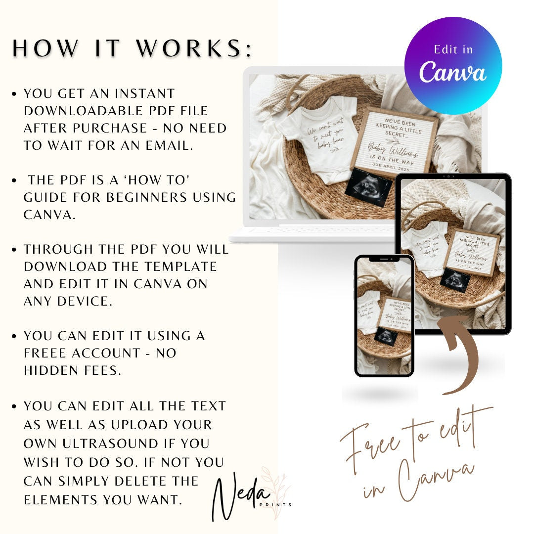 You're pregnant, how exciting!! It's time to share the news with friends and family and this baby announcement mockup is the cutest and quickest way to so. The template is made in Canva so all you need to do is create a free account and your ready to edit your invite.