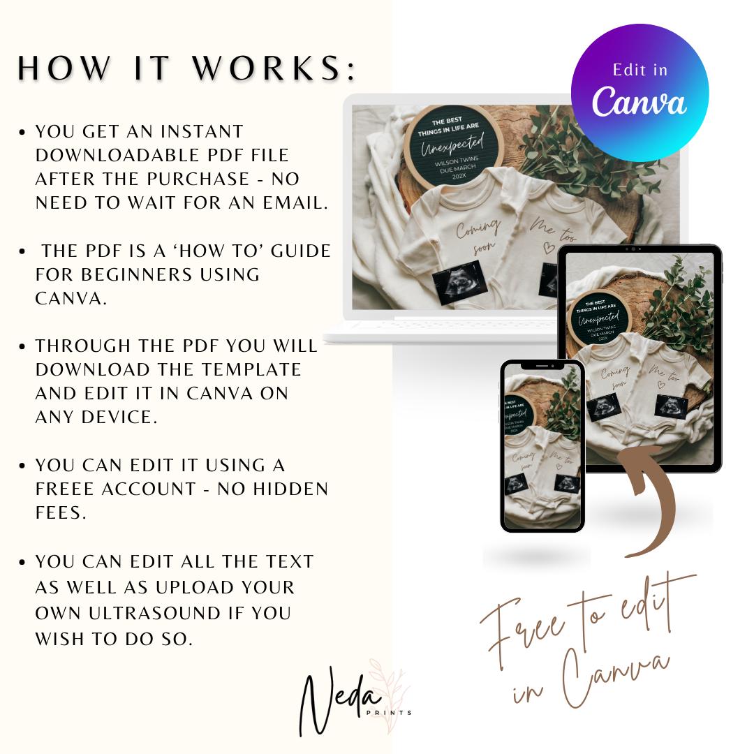 EDITABLE Unexpected Twin Pregnancy Announcement, Twin Baby announcement, Miracle Twin Pregnancy Reveal, Announcement, Digital Download, 0463