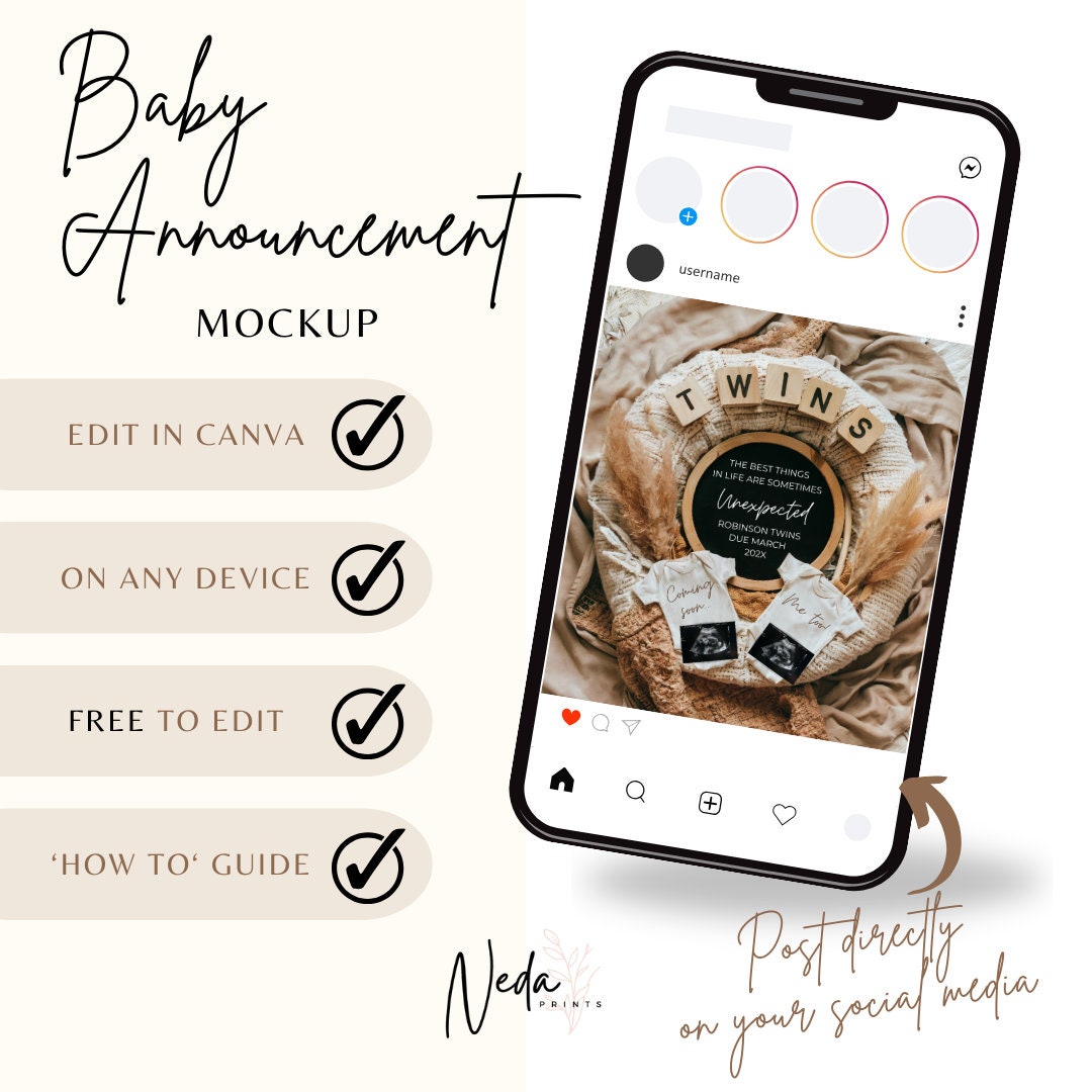 You're pregnant, how exciting!! It's time to share the news with friends and family and this baby announcement mockup is the cutest and quickest way to so. The template is made in Canva so all you need to do is create a free account and your ready to edit your invite.