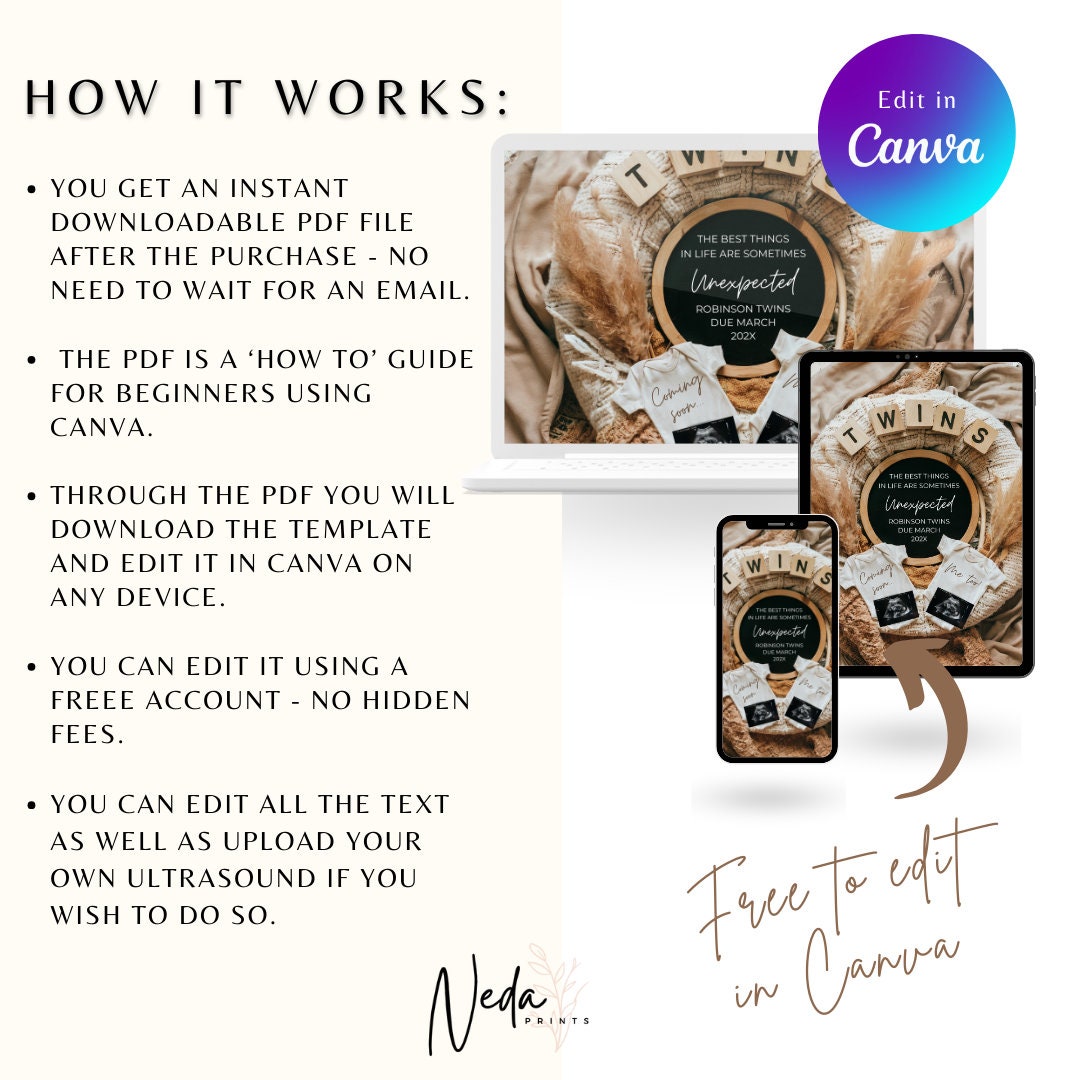 EDITABLE Unexpected Twin Pregnancy Announcement, Twin Baby announcement, Twin Pregnancy Reveal, Announcement, Instant Digital Download, 0458